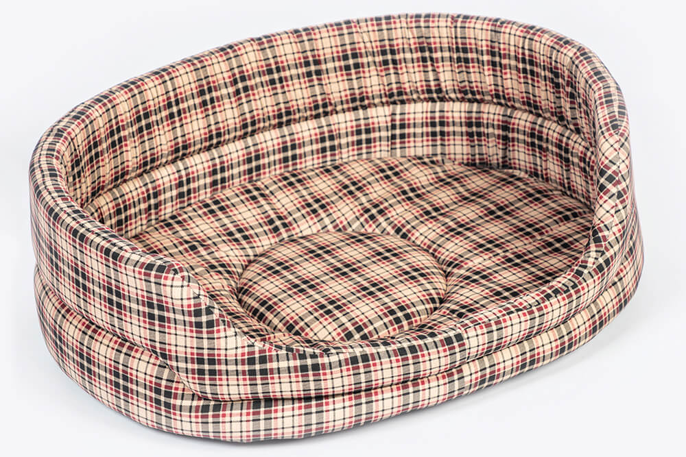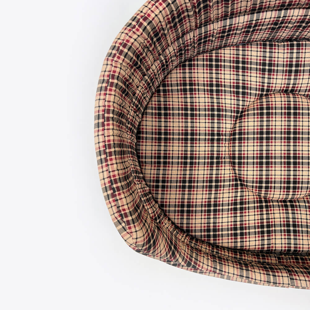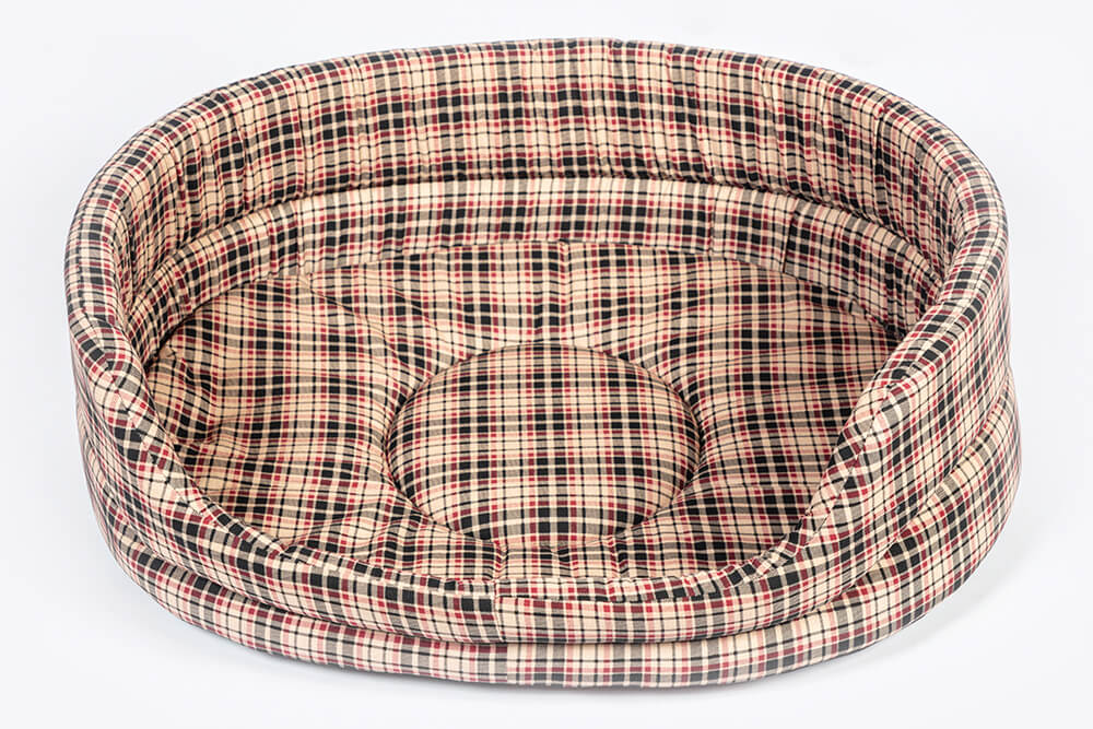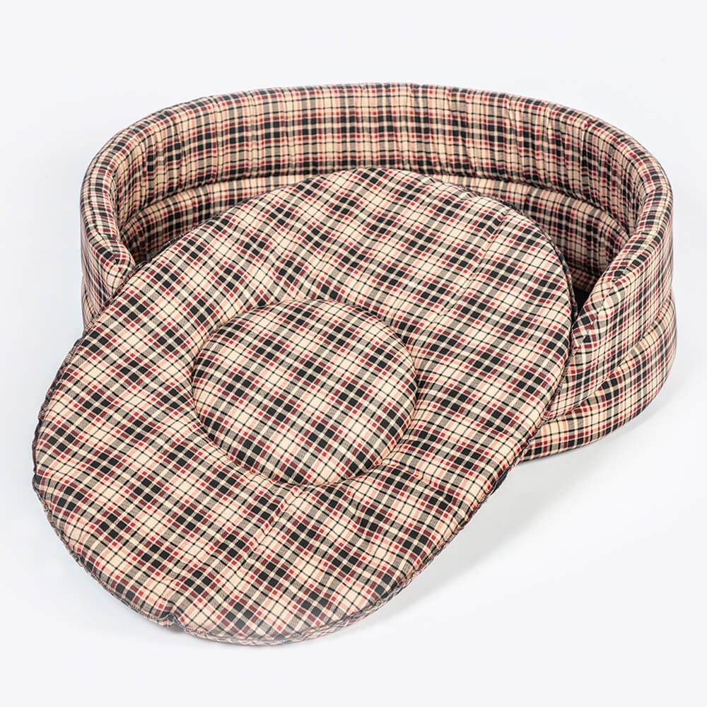 Meet the Danish Design Classic Check Slumber Dog Bed, a cosy and stylish oval-shaped retreat for your furry friend. This British Made dog bed is available in 7 different sizes, perfect for dogs of all breeds and sizes.