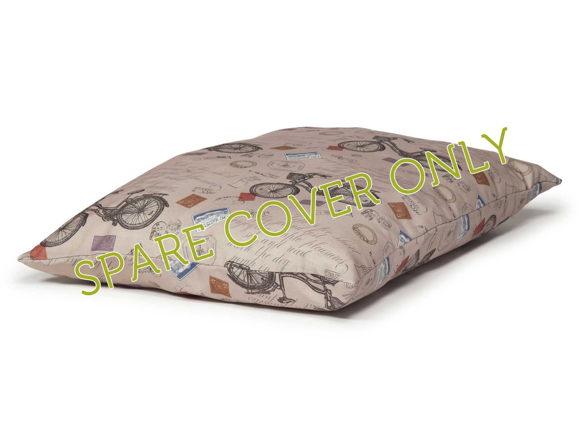 Danish Design Vintage Bicycles Spare Duvet Cover, a retro collection of old-style bicycles and traditional Danish postage marks and stamps.  A spare cover for the Danish Design Duvet Dog Beds. Fully machine washable & available in two size.