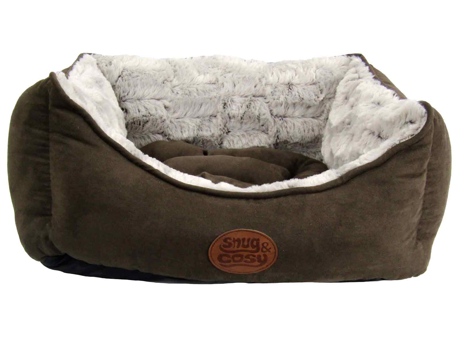 Snug & Cosy Novara Dog Bed available in charcoal and brown with super soft, warm fleece internal material.